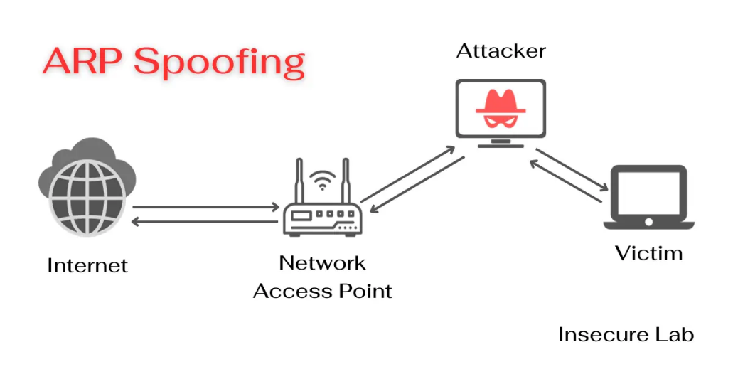 ARP Spoofing, also known as ARP poisoning, is an attack in which a malicious actor sends false ARP responses on the network to associate their MAC address with another device’s IP address, usually the router or a workstation. In this way, the victim’s traffic is redirected to the attacker, allowing them to intercept and manipulate data packets.