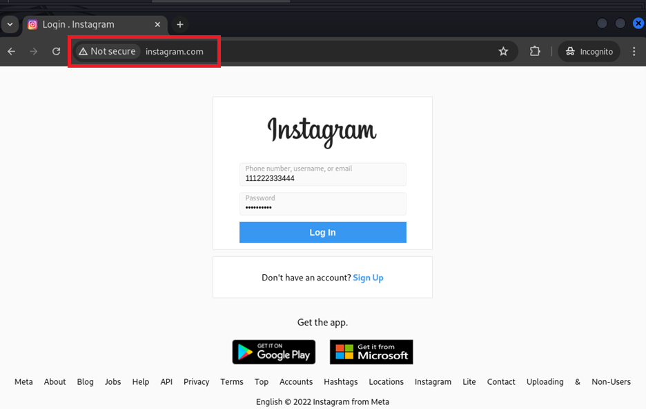 If we enter the data, it redirects us to the original Instagram website.