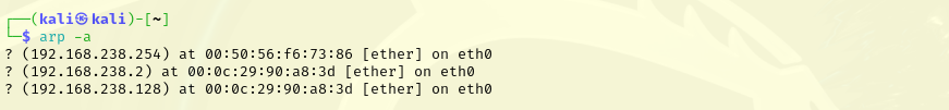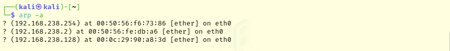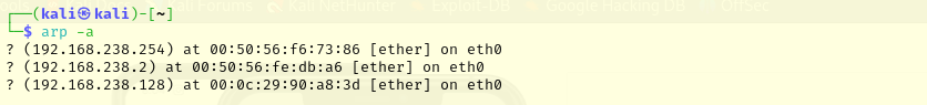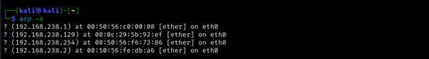 The ARP table of the attacking machine is as follows: