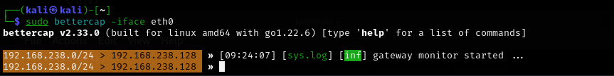 sudo bettercap -iface eth0