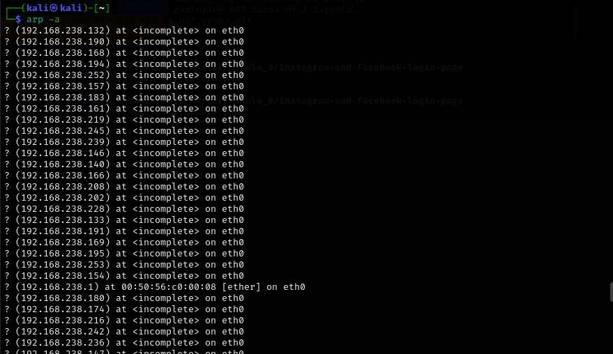 As can be seen, the ARP tables have been restored and the attack has been successfully completed.