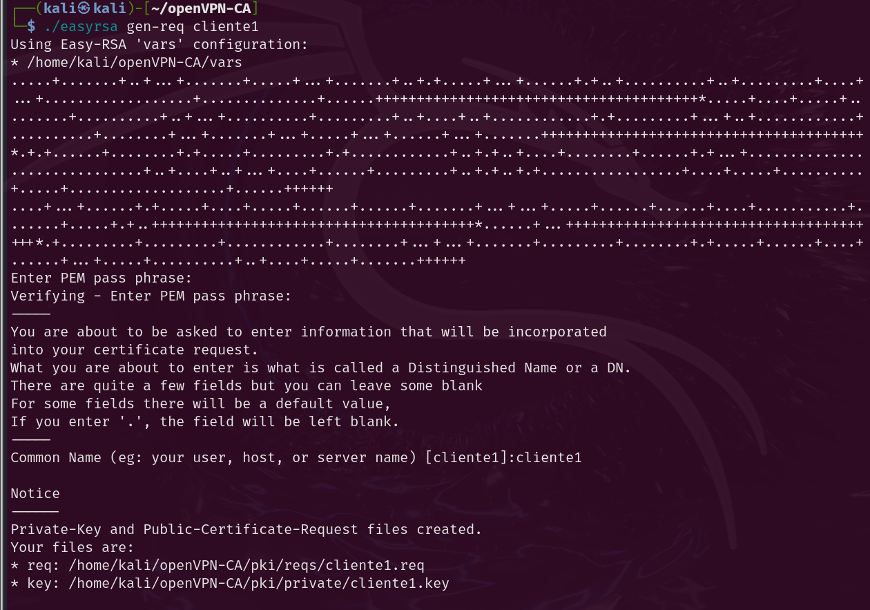 - Key cliente1.key # clinet private key