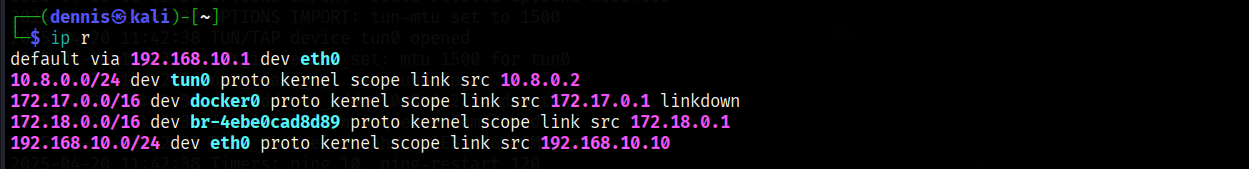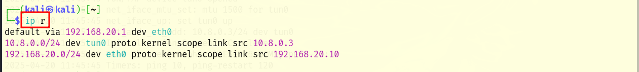 Finally, it remains to check the route through the VPN. To do this, use “ip r”: