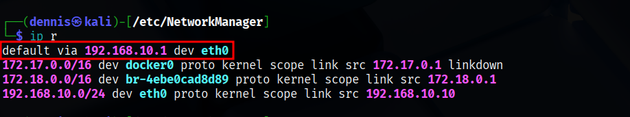 sudo ip route add default via 192.168.10.1 dev eth0