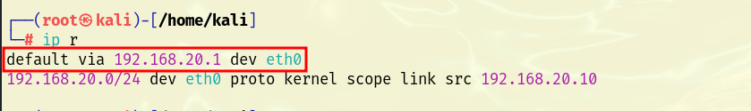 sudo ip route add default via 192.168.20.1 dev eth0