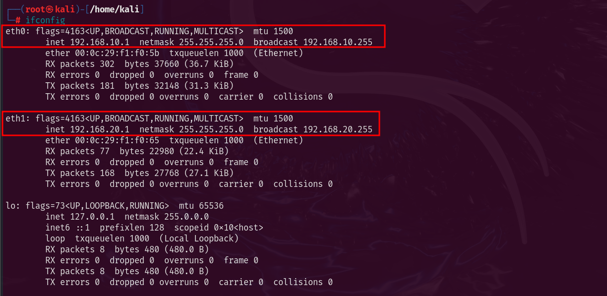 sudo ifconfig eth1 192.168.20.1 netmask 255.255.255.0