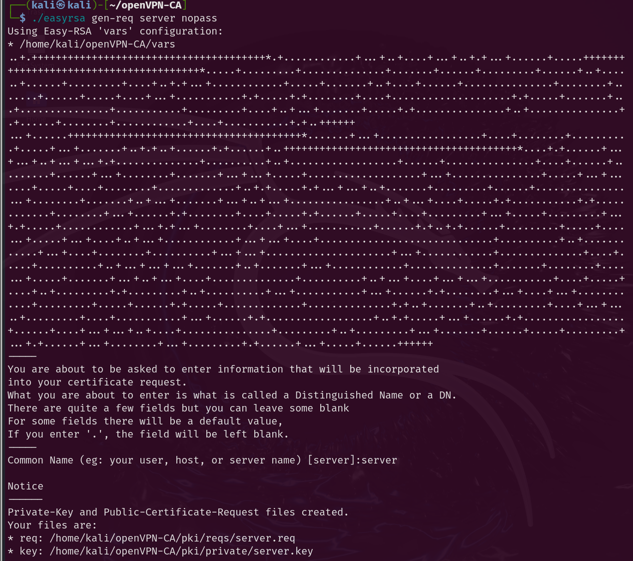 Once the necessary tools have been installed, a directory called openVPN-CA is created in the user’s personal folder with the file structure needed to work with easy-RSA.