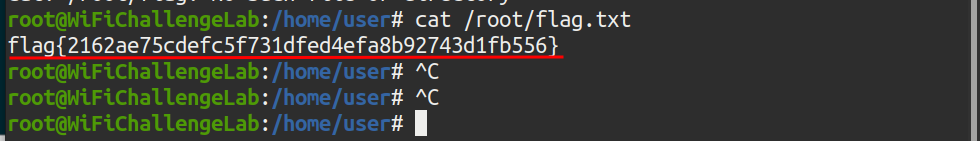To confirm that the lab has been installed and started correctly, the flag located in the /root directory is extracted: