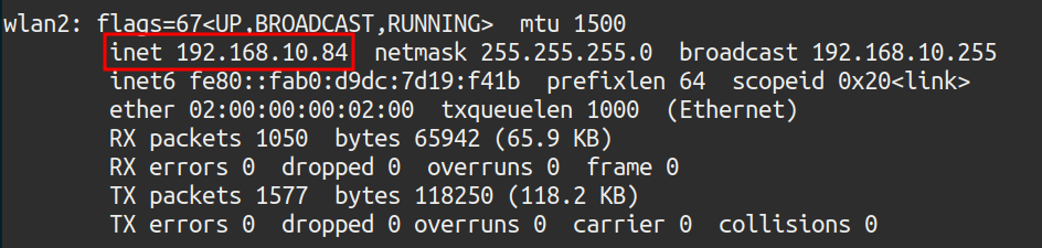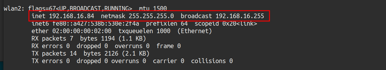 - i wlan2: The interface used (wlan2)