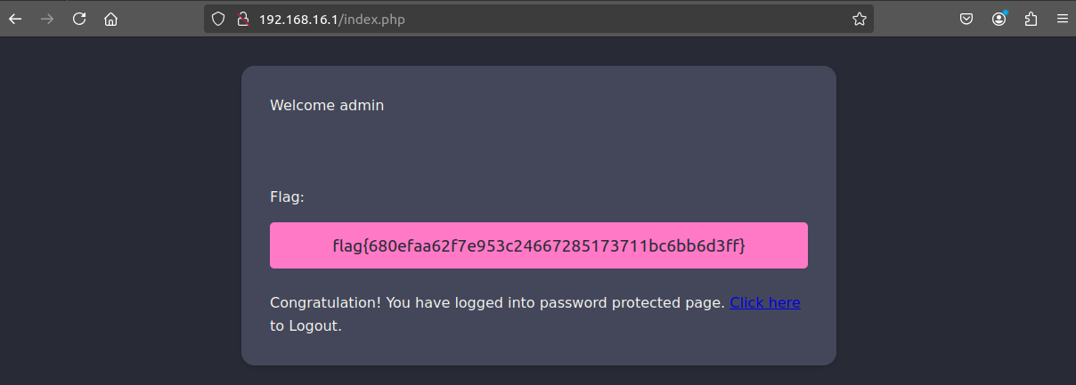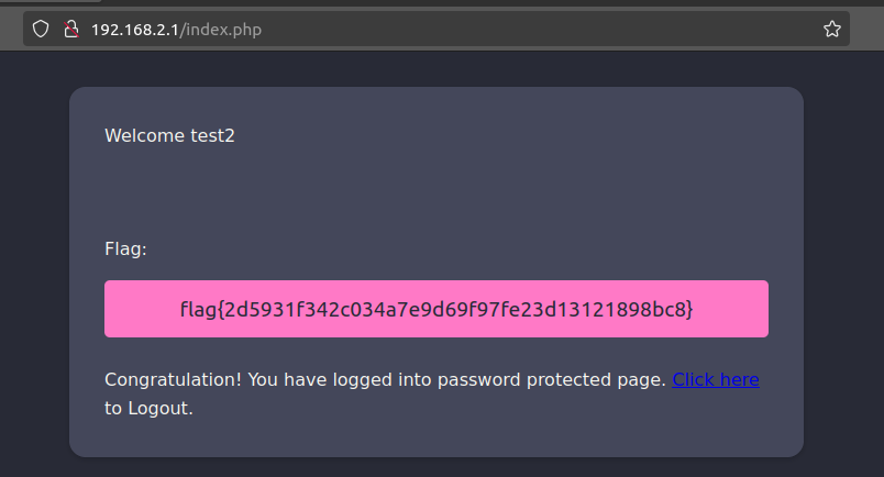 And after logging in using the credentials, the flag is obtained.