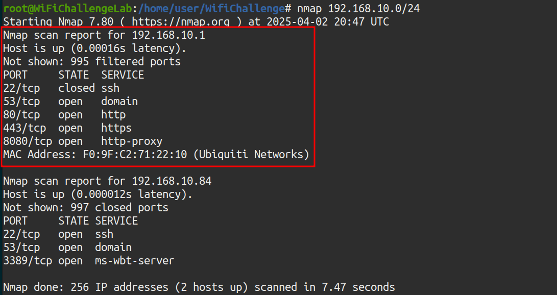 Illustration 13. NMAP scan to the wifi-free network.