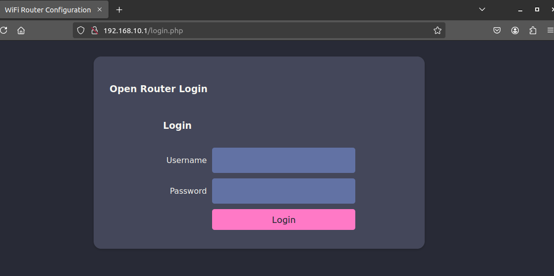 A host with IP 192.168.10.1 is observed with ports 22, 53, 80, 443 and 8080 open. By accessing the website of said host: