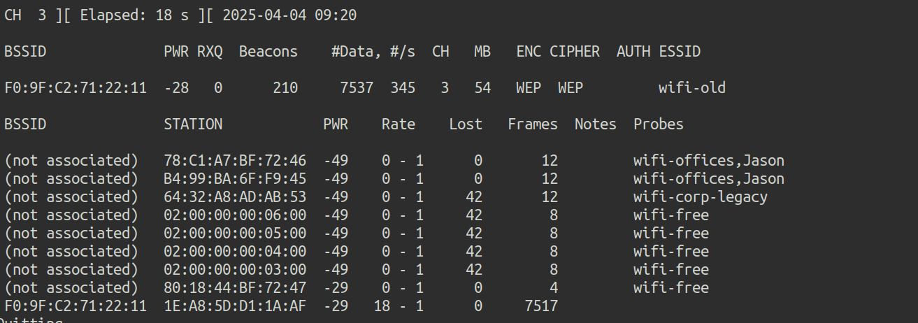 airodump-ng -w dump.cap wlan1mon