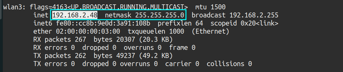 After connecting to the hidden network, the ifconfig command is executed to find out which is the subnet of the network: