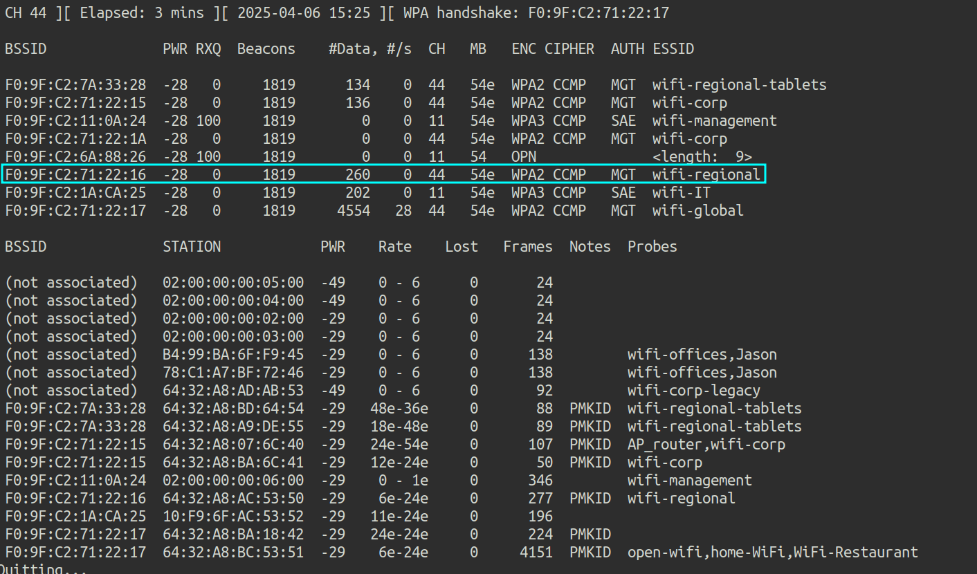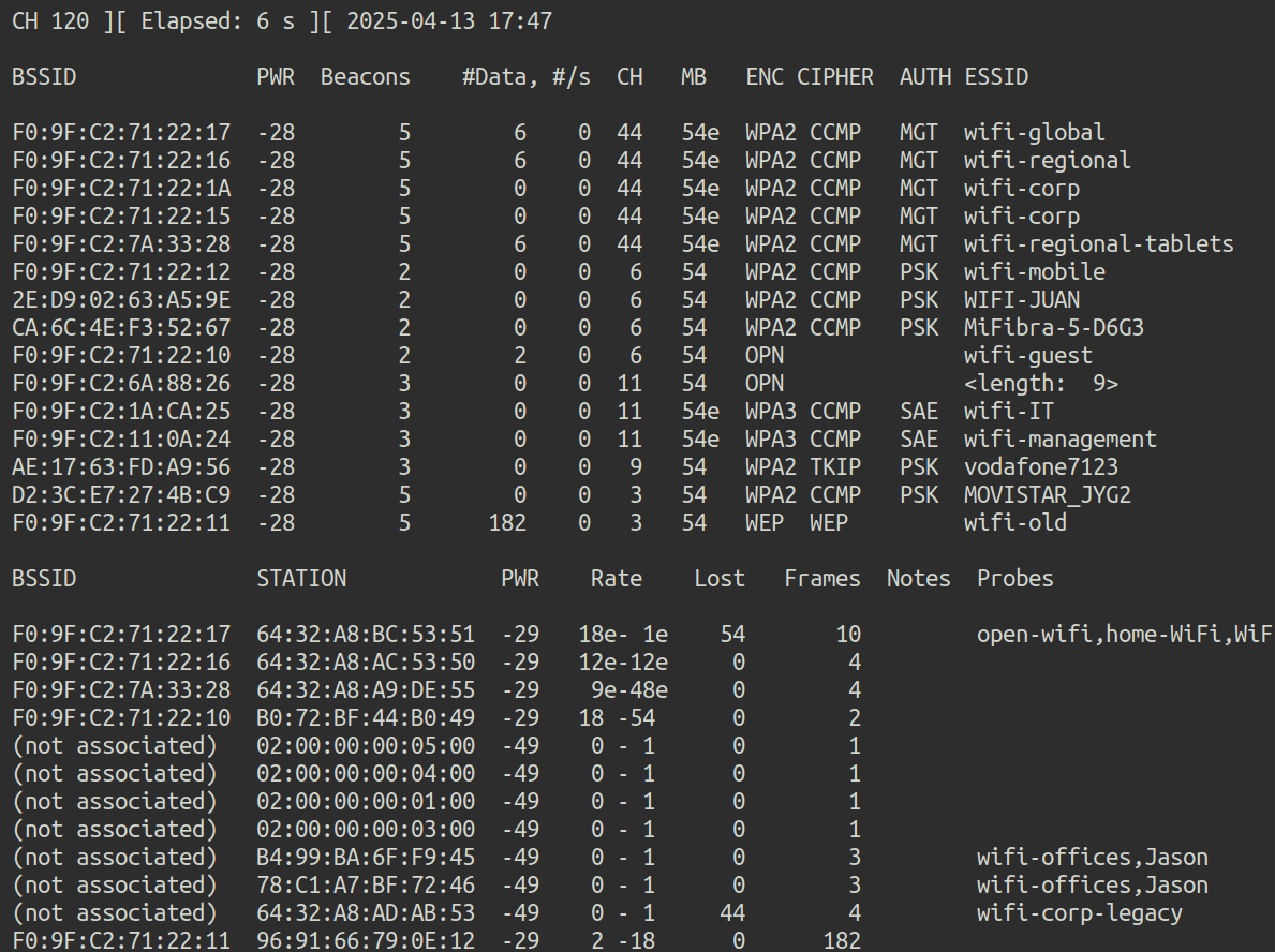 airodump-ng -w wifi-regional -c 44 wlan0mon