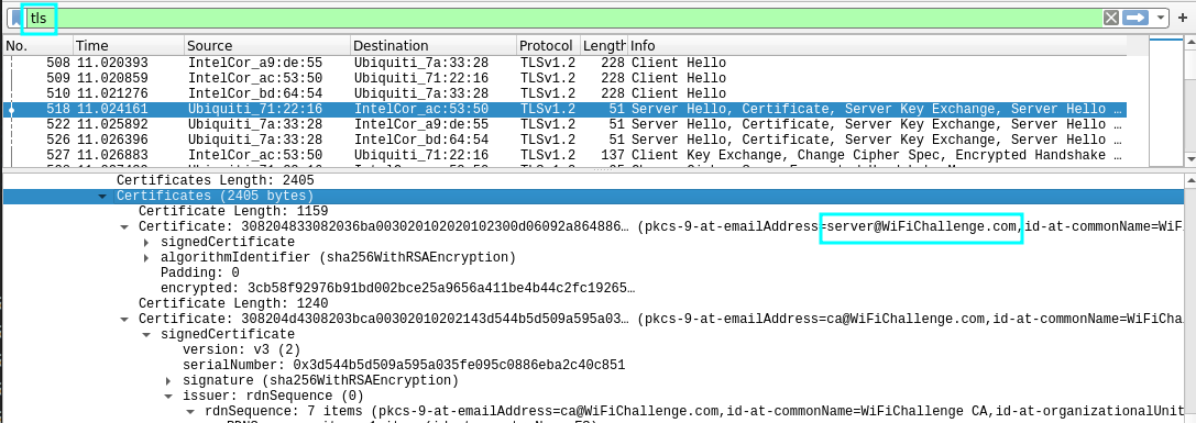 If the traffic obtained in challenge number 15 is further analyzed, the e-mail address of the certificate server can also be extracted: