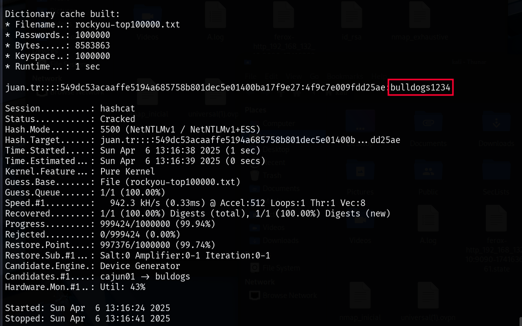 hashcat hash rockyou-top100000.txt # Hash is cracked with hashcat
