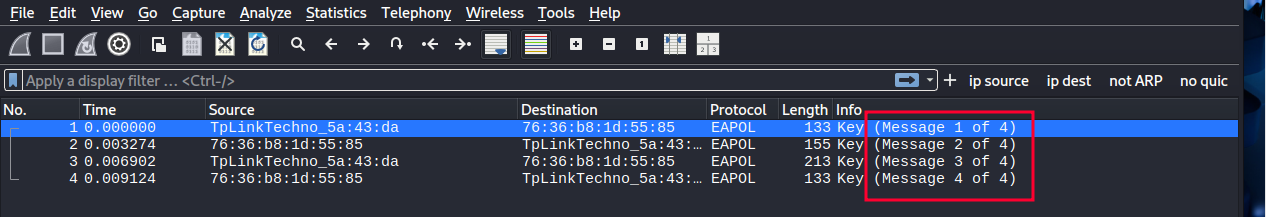 Figure 10. Analysis of the 4 messages of the 4-way handshake.