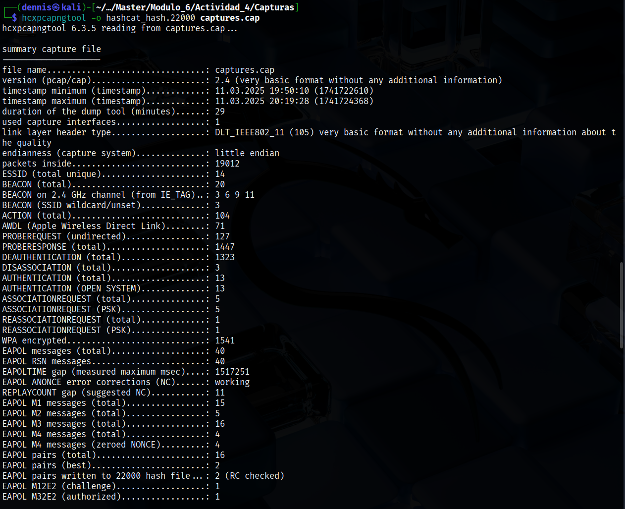 hcxpcapngtool -o hashcat_hash.22000 captures.cap